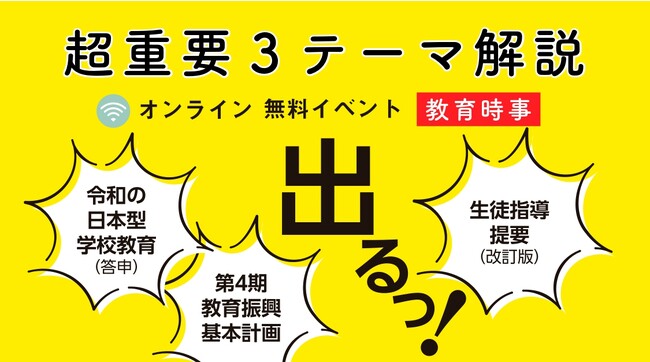 資格取得に向けた教育サービスを展開しているTAC株式会社(東京都千代田区、代表取締役社長:多田 敏男)では、2023年11/18(土) に、教員採用試験を受験する方に向けた無料オンラインセミナー「超重要3テーマ解説(教育時事)」を開催します。