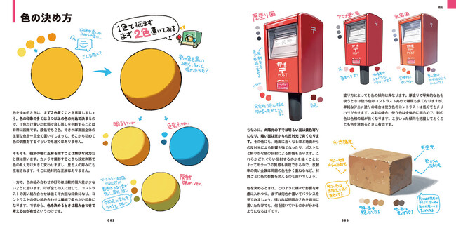 パースを使わない背景、身の回りの色々なモノの描き方、遠近感の表現、色選び、面の捉え方、塗りの基本……などなど。