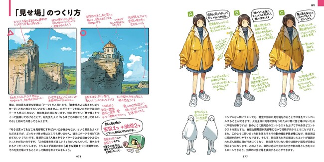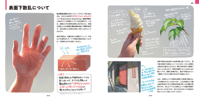 ・陰影の基本・順光・逆光・完成度を高く見せるコツ・色の決め方・木漏れ日のしくみ・表面下散乱について・絵に物語を与えるには・「見せ場」のつくり方・タンジェント(接線)に注意・重ねるテクニック・「透明感」の正体・「抜け感」が空間をつくる・構図いろいろ...ほか