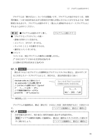 演習問題はABCと順番に難易度が上がるよう調整され、章をこなすごとにプログラミング力を上げていくことができます。本文では「要点」「もっと知りたい人へ」「注意」「クイズ」など、著者ならではの学習に使えるトピックスが視覚的にわかりやすく配置されています。C言語をやさしくしっかり学ぶにはベストな1冊。