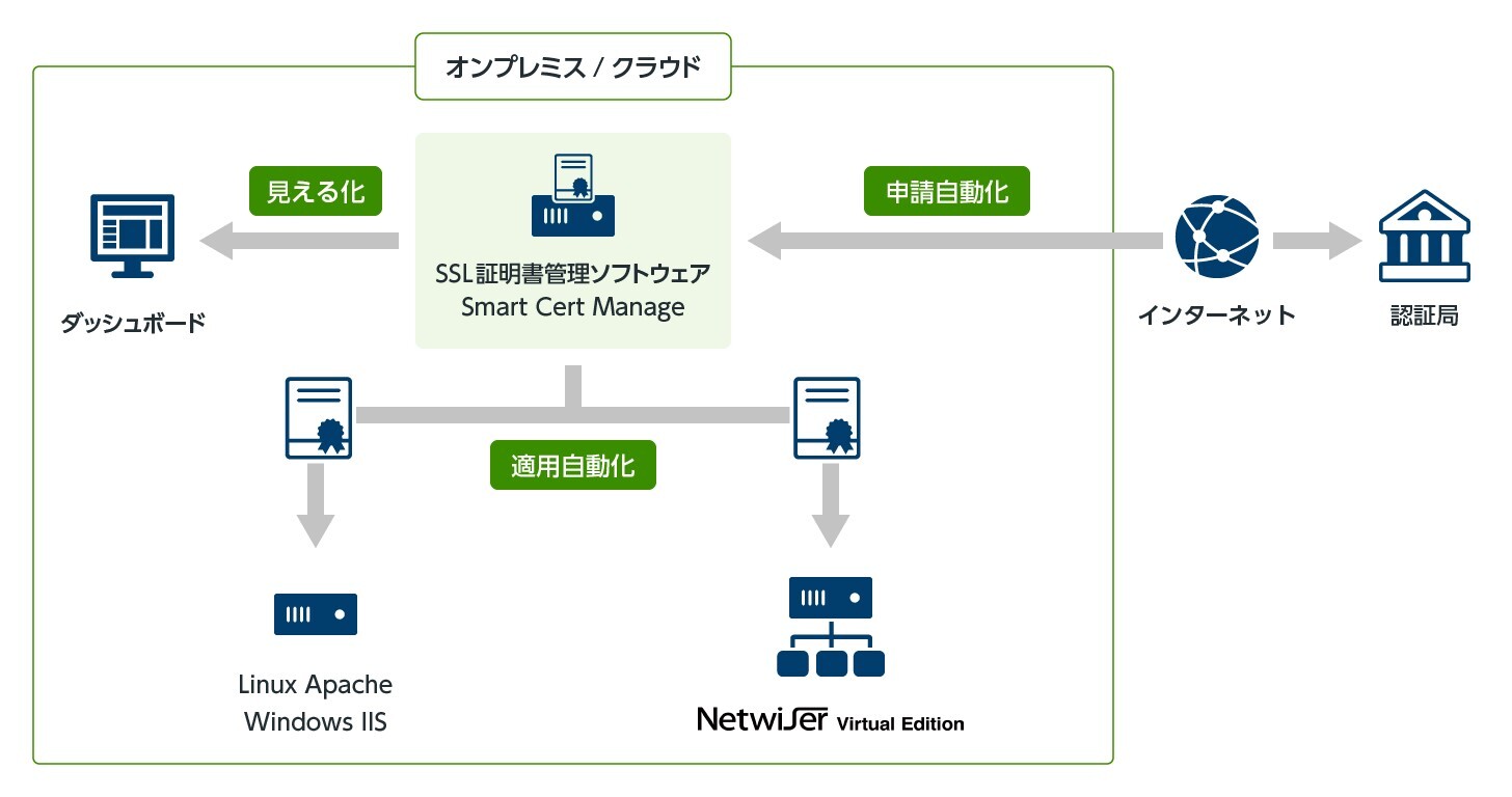 ・ SSL証明書管理ソフトウェア「Smart Cert Manage」の詳細は下記URLを参照ください。