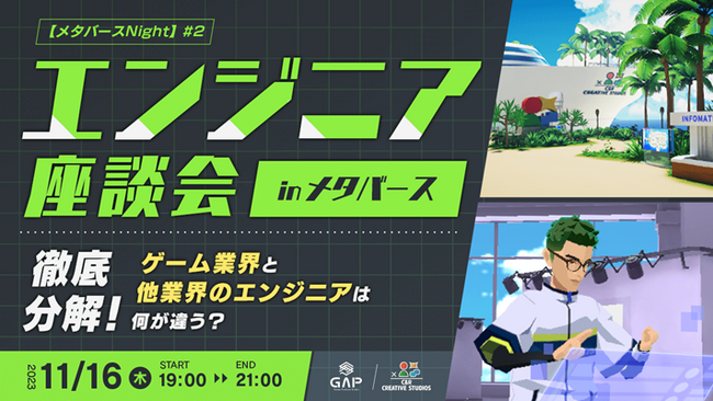 株式会社クリーク・アンド・リバー社(C&R社)は11月16日(木)、ゲームやアプリ開発に携わる方もしくは興味のあるエンジニアの方々を対象に、C&R社が開発したクリエイター専用メタバース「C&R Creative Studios Metaverse」で「【メタバースNight】#2 エンジニア座談会~徹底分解!ゲーム業界と他業界のエンジニアは何が違う?~」を開催します。