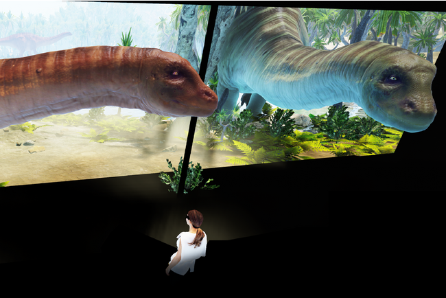 20mのトンネルの中では、恐竜や動物などが飛び出す臨場感あふれる様々なコンテンツを、周りも見える軽量メガネをかけるだけで複数人で同時に体験できる新型アトラクションです。
