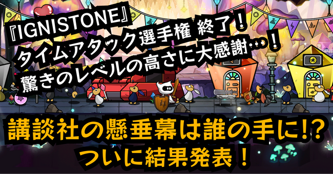 講談社ゲームクリエイターズラボ主催『IGNISTONE』タイムアタック選手権、ついに結果発表。ハイレベルな戦いを制し「講談社・本社ビルにプレイヤー名とアイコンを掲載する権利」を勝ち取ったのは誰だ!?