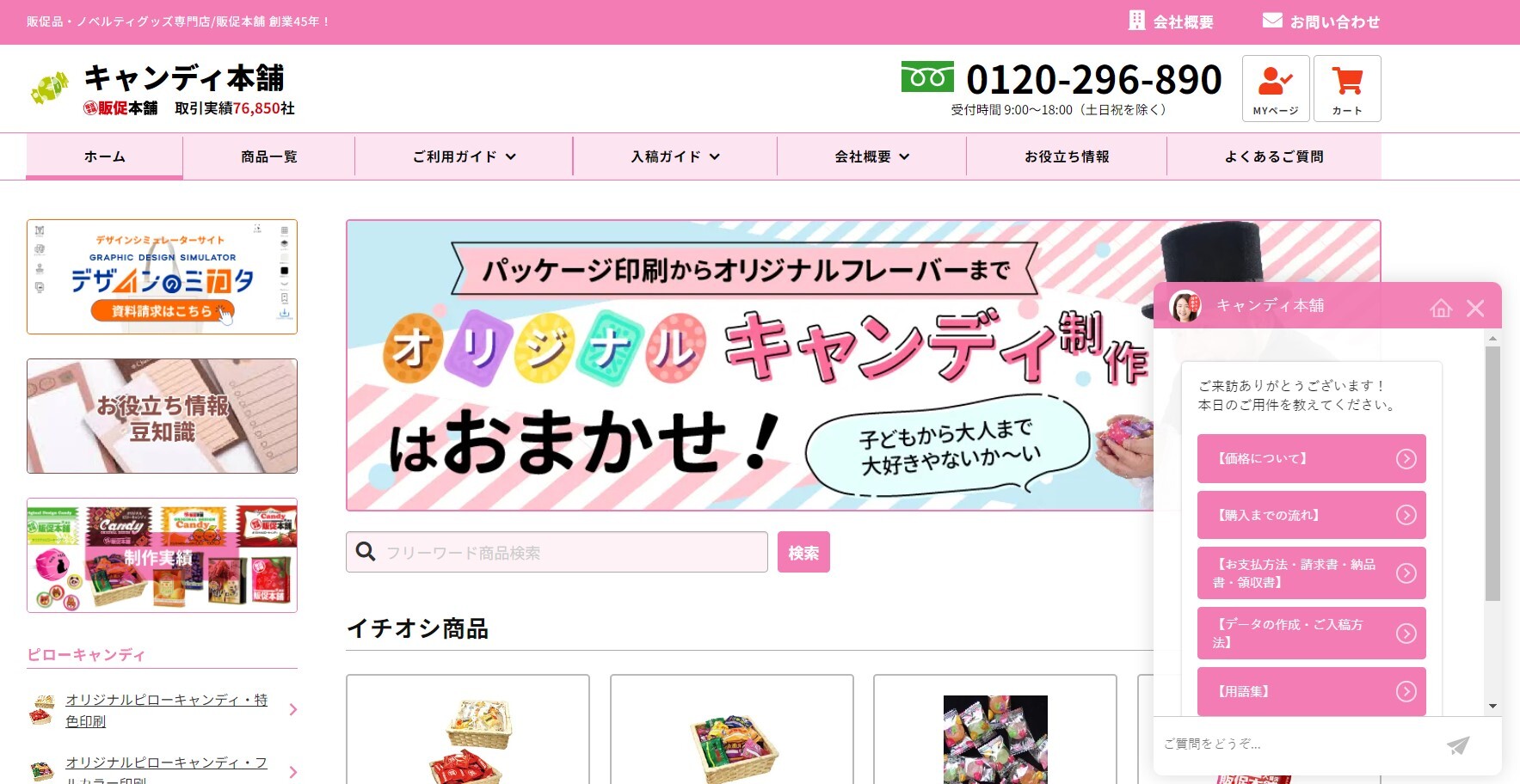 「キャンディ本舗」は、販促用のオリジナルキャンディを専門に販売するECサイトです。