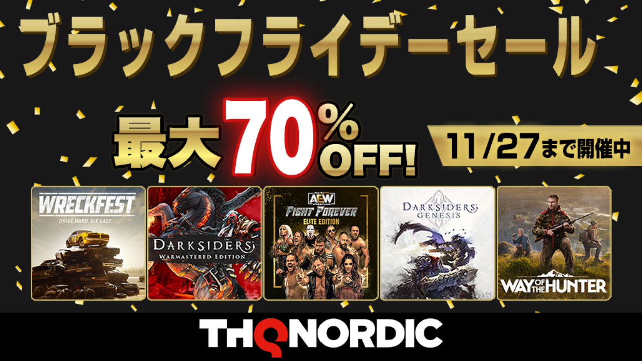 THQ Nordic Japan株式会社は、PlayStation™Store Black Fridayセールにて、全7タイトルが最大70%オフでお買い求めいただける「THQ Nordicブラックフライデーセール」を実施中です。