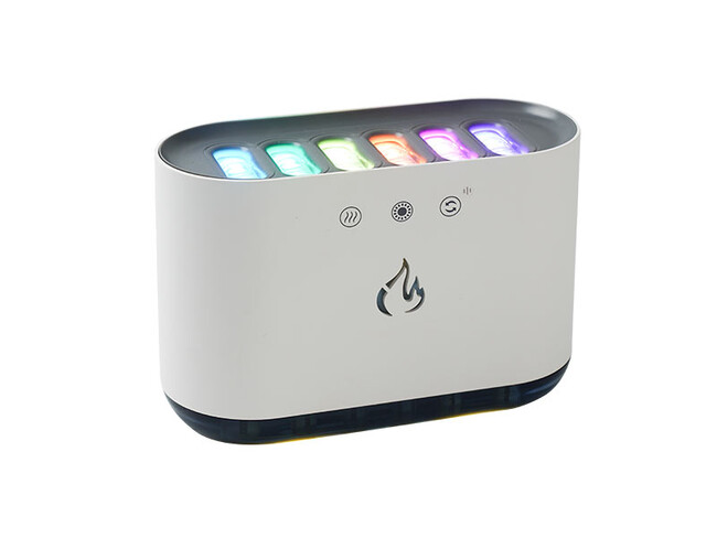 噴霧口6口、1口から6口まで噴霧量の調整が可能。通常のモードと音に反応するモード(ビートモード)を搭載。ビートモード時は周囲の音に反応し、LEDとともに1口から6口の噴霧口からミストが噴霧されます(LEDの色はランダムとなります)。通常モード時にはLEDの色を19色から固定することが可能。自動で色が変わるグラデーションパターンを5種類搭載。お好みのアロマオイルをタンク内に垂らして使うことも可能。