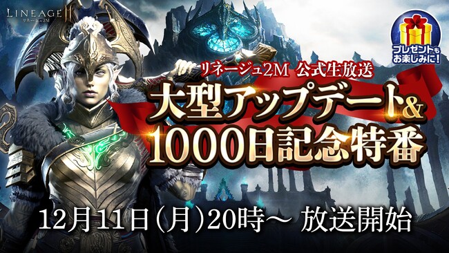 大型アップデート「血吹雪の主 双斧」の実施を記念し、「リネージュ2M公式生放送 大型アップデート&1000日記念特番!」を12月11日(月)20時よりお送りします。