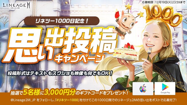 ■「リネツー1000日記念!思い出投稿キャンペーン」開催