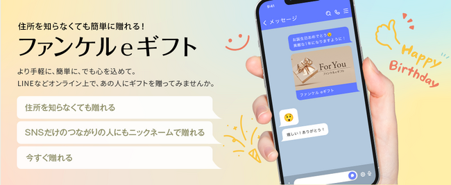 通常のオンラインプレゼントだと送り主が本名で表示されますが、本サービスではニックネームでプレゼントすることが可能です。SNS友達にアカウント名でプレゼントするなど、現代のコミュニケーションに合わせたプレゼントが可能になりました。