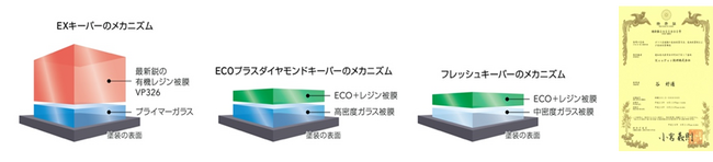 ガラス被膜+レジン被膜の重層の透明被膜が生んだ、「愛車のツヤと輝きを凌駕するボディガラスコーティング」。