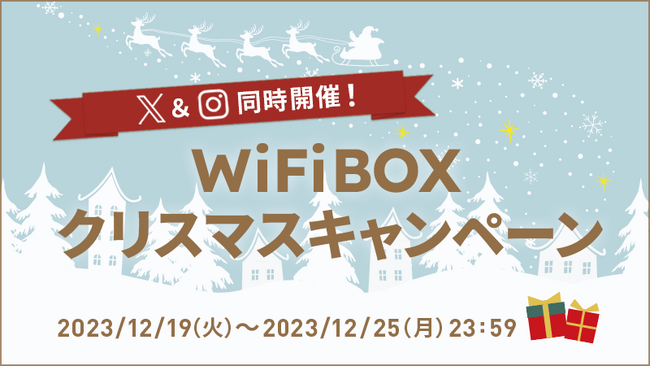 WiFiBOXは、サービス開始2年目に突入した2023年も、おかげさまで多くの方にご利用いただくことができました。今回、日頃のご愛顧に感謝の気持ちを込めて、WiFiBOX公式SNSにてクリスマスキャンペーンを実施いたします。公式X(旧Twitter)およびInstagramにて同時開催となり、どちらのキャンペーンにもご参加いただけます。