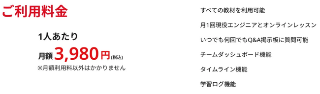 マンツーマン式のスクールで学習するには「金銭的余裕がない」という方や、まずは「プログラミングに触れてみたい」という初学者の方、またスキルアップのために「プロに相談したい」という中級者の方などにも気軽にご利用いただけるよう、低価格でありながら、実践的かつ質の高い学習ができる環境を詰め込んだ、日本最安級のサブスクリプション型サービスです。