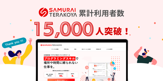 株式会社SAMURAI(本社所在地:東京都千代田区、代表取締役 :高比良 直人)が運営する、サブスク型IT研修サービス「侍テラコヤ」の累計利用者数が、2023年12月時点で15,000人を突破いたしました。