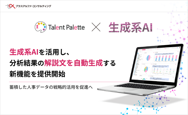 株式会社プラスアルファ・コンサルティング(本社:東京都港区、代表取締役社長:三室克哉、証券コード4071)は、科学的な人材活用や人的資本の開示、人事業務のDX化、リスキリングの推進などを背景に、多くの企業で導入が進んでいるタレントマネジメントシステム「Talent Palette(以下:タレントパレット)」に、蓄積した人材データから得られるさまざまな分析結果の解説文を生成AIにより自動生成する新機能をリリースしました。