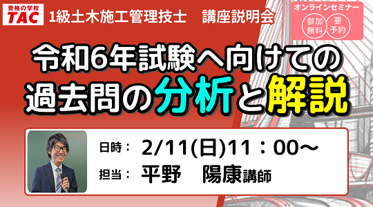 2024年に一級土木施工管理技士試験をはじめてご受験される方。TACの講座をご検討されている方