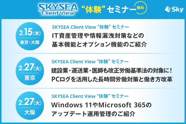「SKYSEA Client View」 2月開催ハンズオンセミナー