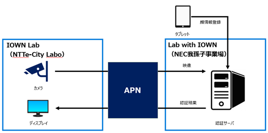 日本電気株式会社(本社:東京都港区、取締役 代表執行役社長 兼 CEO:森田 隆之、以下「NEC」)と、東日本電信電話株式会社(本社:東京都新宿区、代表取締役社長:澁谷直樹、以下「NTT東日本」)は、2024年1月24日より、「NEC CONNECT Lab with IOWN(以下、「Lab with IOWN」。所在地:千葉県我孫子市)※1」と、「IOWN Lab※2(所在地:東京都調布市)」を接続し、IOWN※3におけるオール・フォトニクス・ネットワーク(以下「APN」)※4を活用したユースケース創出に向けて実証を開始しました。第一弾としてNECの顔認証技術を活用し、遠隔からのリアルタイム顔認証を実証します。