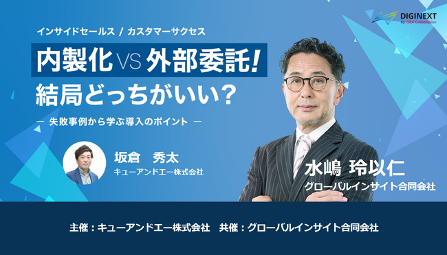 キューアンドエー株式会社(東京本社:東京都渋谷区、代表取締役:野村勇人)は、「インサイドセールス/カスタマーサクセス 内製化vs外部委託 ~失敗事例から学ぶ導入のポイント~」をテーマに2023年10月25日(水)にウェビナーを開催しました。ご好評につき、本日1月24日から1月31日まで、限定でアーカイブ配信をいたします。