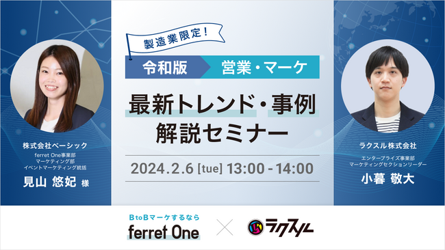 今回2024年2月6日(火)に株式会社ベーシック様と製造業の営業・マーケティングにおいて、Webとオフラインをどのように使っていくべきか事例も交えて解説いたします。