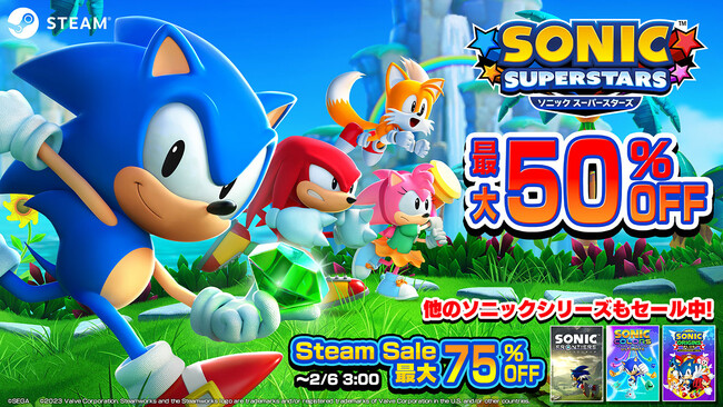 今回のセールでは、美麗な3Dグラフィックで表現された、個性豊かなゾーンでのハイスピードな横スクロールアクションが楽しめる『ソニックスーパースターズ』がラインナップに登場。