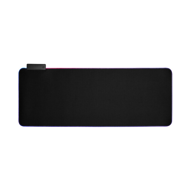 幅約80×奥行約32.5×厚さ約1cm。表地は滑らかな質感で水をこぼしても染み込みにくいマルチスパンデックスファブリック、裏面は滑りにくいシリコンラバー素材を採用。USBから給電。本体左上側にUSB4ポートのハブ機能を搭載。ハブ部分の電源ボタンを押すと、本体全周に搭載しているLEDが点灯。単色7色(赤→青→緑→紫→シアン→黄→白)や他点灯パターンを6種類搭載し気分を盛り上げます。