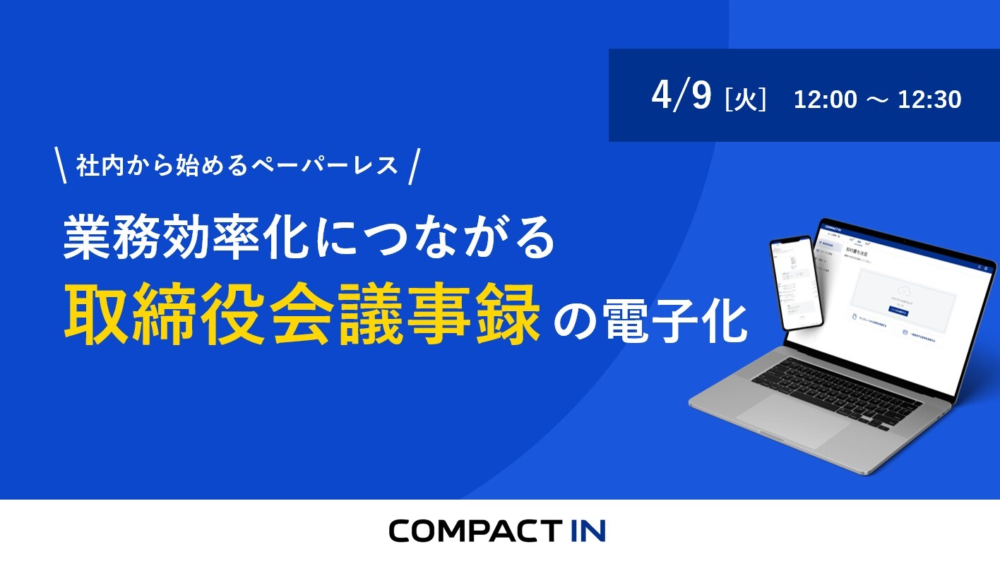 社内規程の変更や関係者向けの周知方法など、取締役会議事録を電子化するにあたって必要な対応やポイントをわかりやすく解説いたしますので、お時間が合う方はぜひお申込みください。