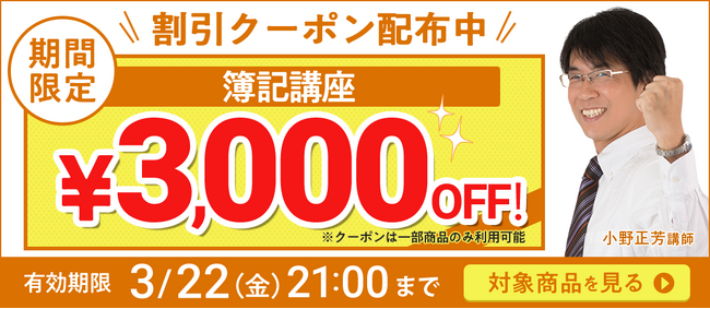 3,000円割引のお得なクーポンは、3月22日(金)21時までに商品のお申し込みされた方が対象となります。