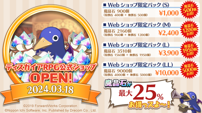 本日2024年3月18日(月)より、ゲーム内アイテムの販売を行う「魔界戦記ディスガイアRPG ~最凶魔王決定戦!~」公式ウェブショップのサービスを開始いたしました。