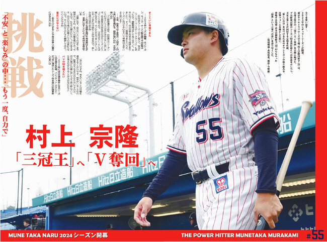 巻頭は村上宗隆内野手のインタビュー。自身2度目の三冠王と「チームスワローズ」でV奪還を目指す胸中を語ります。巻末には新戦力の西川遥輝外野手が登場。チームへの貢献に徹するスピードスターの決意とはー。