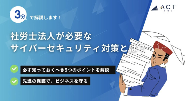 今年30周年を迎え、サイバーセキュリティ事業などを行う株式会社アクト(本社:東京都文京区、代表取締役CEO 小林 智彦 、以下 アクト)は【3分で解説!社労士法人が必要なサイバーセキュリティ対策とは?】のホワイトペーパーを公開しました。