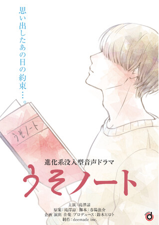 音声ドラマ「うそノート」は、新曲「うその音」から滝澤本人がインスピレーションを受け原案を作成しました。主人公のマコトが、旧友レイとの思い出話から子どもの頃に書きためていた「うそノート」の存在を思い出し、「嘘をついたら自分のことがわからなくなってしまう」という母の言葉の意味を探し求めていく、心の成長を描くハートフルな物語となっています。