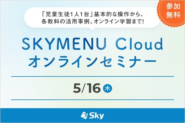 実際の授業を想定した活用シーンに合わせて「SKYMENU Cloud」の操作をご体験いただけるセミナーです。操作方法や活用場面などに関するご質問も承りますので、ぜひお気軽に「SKYMENU Cloud」をご体験ください。