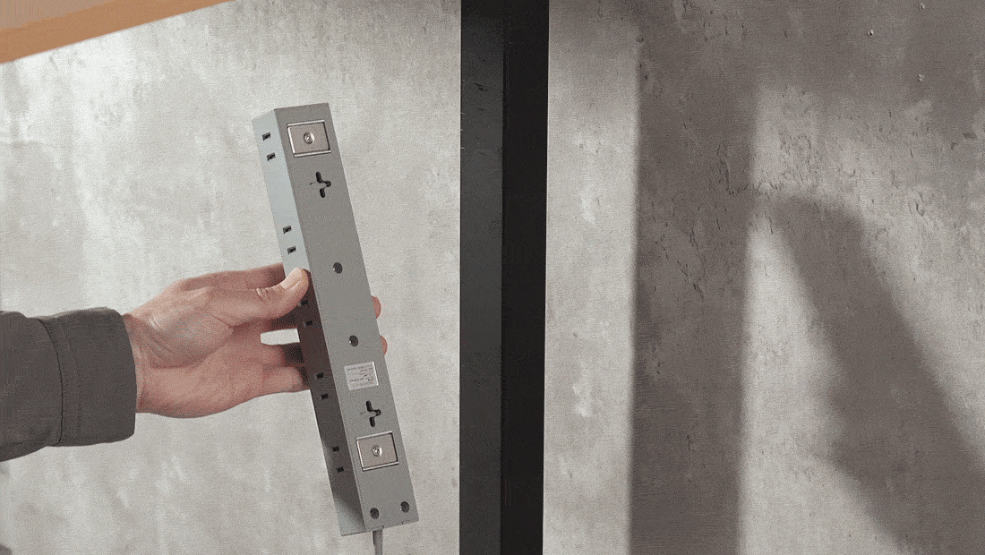 強力マグネットが付いているのでスチールデスクの脚やキャビネットなど、マグネットがくっつく場所にしっかりと取り付けられます。安定感がありタップ本体や配線が乱れる心配もなく、使いやすい空間を作れます。