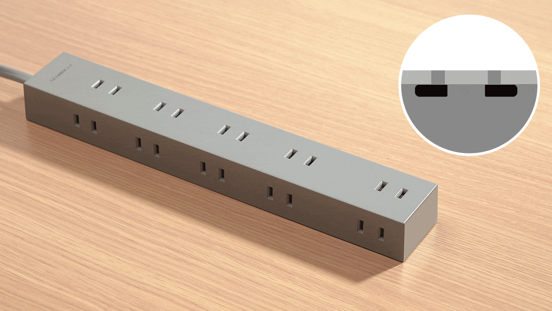 差込口の配置が正面と側面の2方向から電源プラグを差せるよう工夫されており、プラグ同士が干渉せずに効率よく差せます。狭いスペースでもすっきりとプラグを設置でき、配線の乱れも解消します。