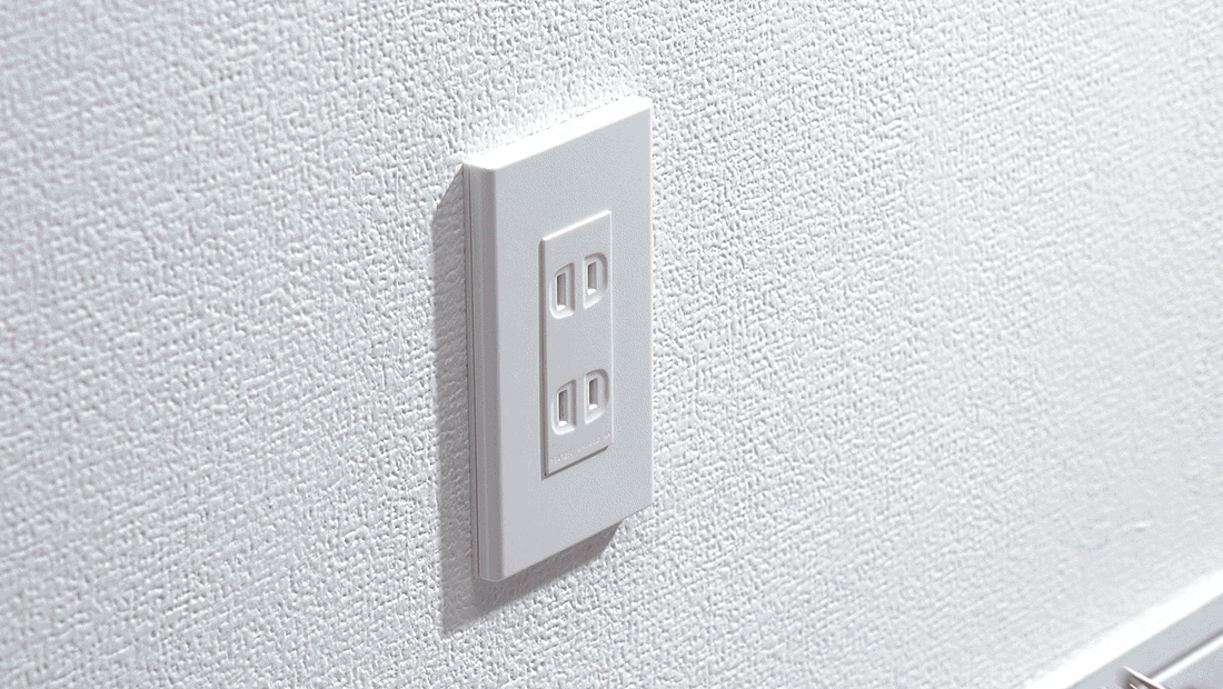 スイングプラグは壁からの出っ張りが少なく、配線を壁に沿わせることができます。スッキリとした設置が可能で、お部屋のスペースを有効活用できます。壁とソファの間や家具の裏など狭いスペースにある壁面コンセント等にも配線できます。