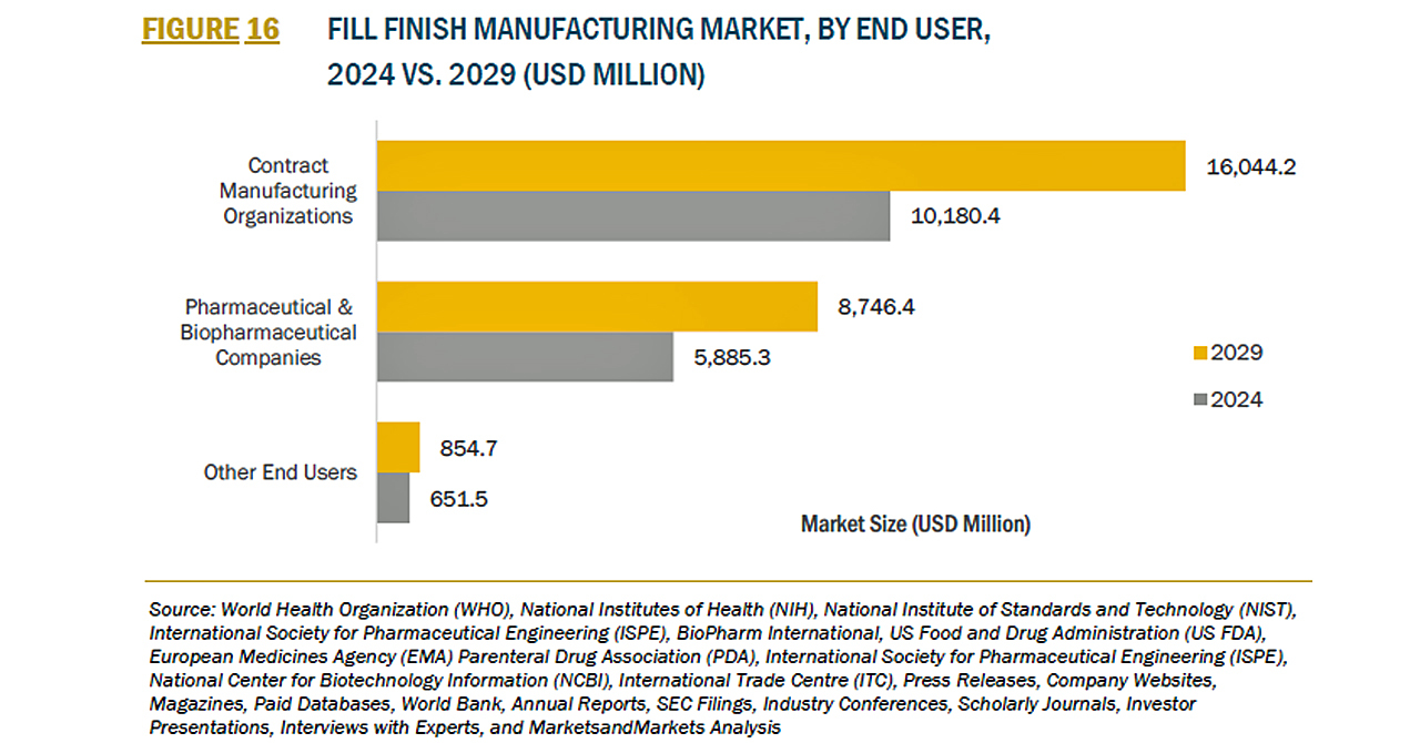 充填仕上げ製造の市場規模は、2024年の167億米ドルからCAGR8.9%で成長し、2029年には257億米ドルに達すると推定されています。バイオテクノロジーおよび製薬業界におけるアプリケーションの増加、非経口投与用のプレフィルドシリンジの採用増加などにより、有利な市場成長がもたらされると予想されています。一方、充填仕上げ製造に関連する高い運用コストが市場を抑制すると予測されます。