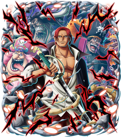 シャンクスを中心に、黒ひげ、バギー、そしてギア5となったルフィの新四皇達が写りこんでいるド迫力のイラスト! 必殺技演出には、四皇全員のボイス付き!