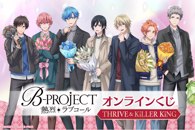 株式会社KADOKAWA(本社:東京都千代田区、取締役 代表執行役社長 CEO:夏野 剛、以下 KADOKAWA)は、運営するオンラインくじサービス「くじ引き堂」において、TVアニメ『B-PROJECT ~熱烈*ラブコール~』の本くじ限定オリジナル賞品が手に入る<TVアニメ「B-PROJECT ~熱烈*ラブコール~」オンラインくじ THRIVE&KiLLER KiNG>を、2024年5月23日(木)17時より販売します。