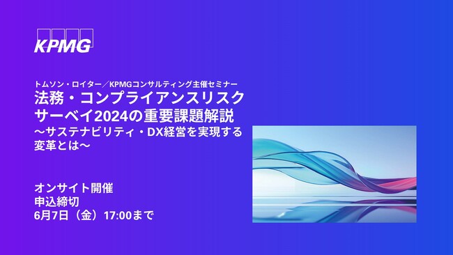 本セミナーでは、「法務・コンプライアンスリスクサーベイ2024」を踏まえて、人権、法務DX、AIガバナンスの3つのテーマを中心に法務・コンプライアンス部門が取り組むべき課題について解説します。また、共催社であるトムソン・ロイターのセッションでは、法務DXに向けたソリューションを紹介します。解説を踏まえ、ワークショップでは自社の法務・コンプライアンス機能に関する課題を可視化し、経営に資する法務コンプライアンス部門への変革に向けた次なる一手を見つけることを目的とします。
