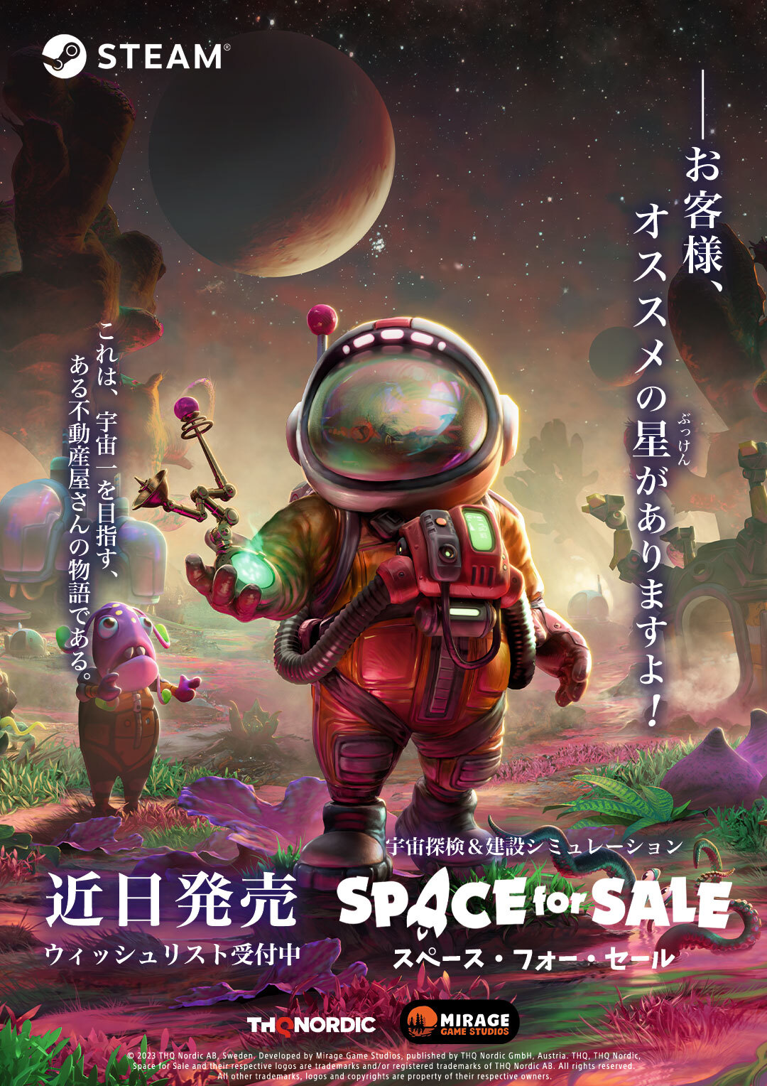 © 2023 THQ Nordic AB, Sweden. Developed by Mirage Game Studios, published by THQ Nordic GmbH, Austria. THQ, THQ Nordic, Space for Sale and their respective logos are trademarks and/or registered trademarks of THQ Nordic AB. All rights reserved. All other trademarks, logos and copyrights are property of their respective owners.
