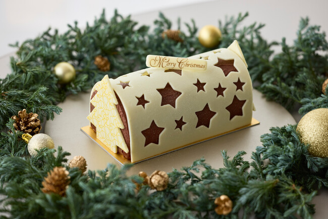 スイス出身のエグゼクティブペストリーシェフ パトリック・ティボーが手掛ける「ブッシュ ド ノエル」は、ヨーロッパの伝統的なクリスマスシンボルをモチーフに冬の魔法を感じさせるホリデーシーズンにぴったりの一品です。クリスマスボックスを開けるとホワイトチョコレートで作られたスノーに降り注ぐたくさんの星やクリスマスツリーをあしらった、愛らしいケーキがお目見え。
