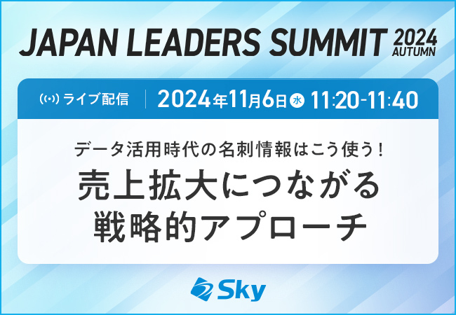 IT化が進み、もはやビジネスの発展にはデータ活用が不可欠といわれる時代。売り上げの拡大を目指すには、組織内にあるさまざまなデータを集約・共有し、適切なアプローチにつなげていく必要があります。その第一歩としてお勧めなのが、名刺情報の活用です。そこで本セミナーでは、組織全体で名刺情報を共有し、戦略的なアプローチにつなげる方法を解説。営業支援 名刺管理サービス「SKYPCE」を活用した、効果的な営業活動やマーケティングについてもあわせてご紹介します。