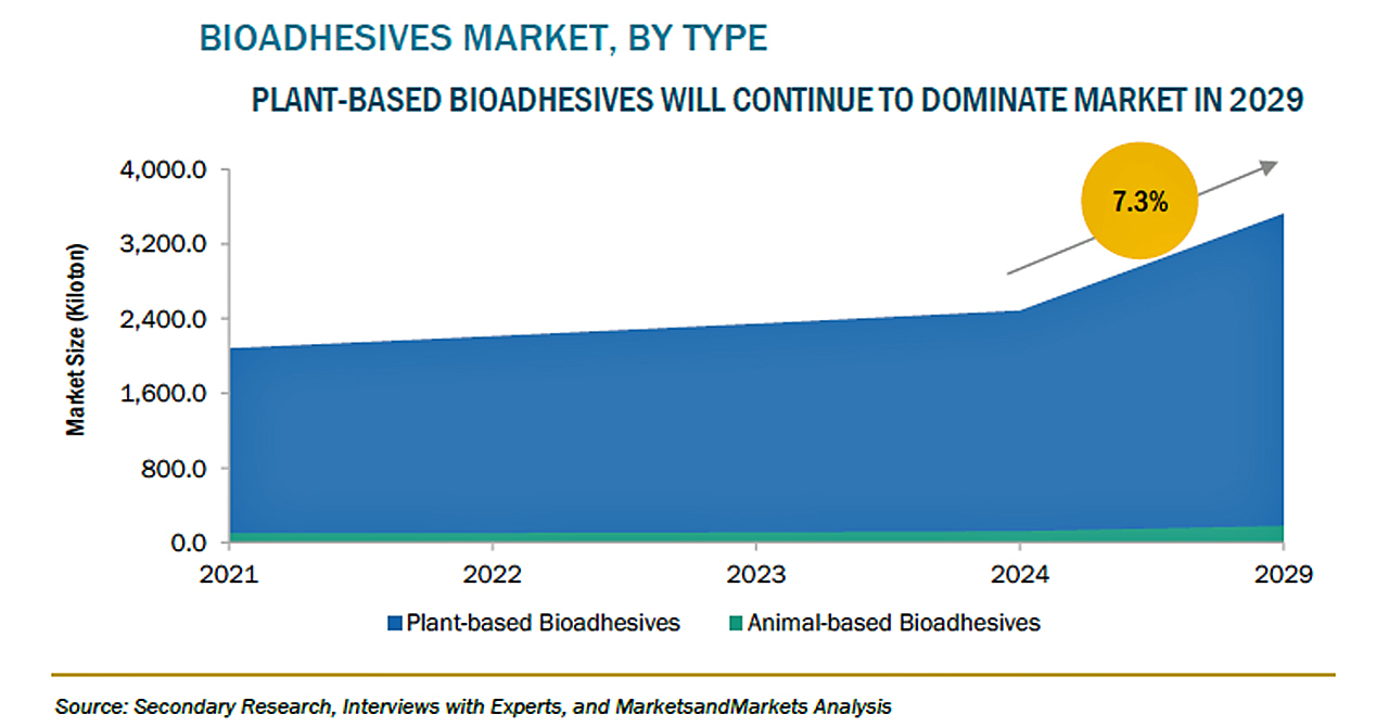 バイオ接着剤は、多様な産業用途に強力な接着と柔軟なソリューションを提供します。最先端の技術や用途における生分解性および環境にやさしい接着剤に対するニーズの高まりが、この拡大の主な推進要因となっています。これらの接着剤は天然および再生可能な資源から派生しており、環境への影響を最小限に抑える持続可能な代替手段を提供します。バイオ接着剤の天然成分により、建築、木工、医療、パーソナルケアなどの分野におけるグリーンソリューションのニーズに対応することができます。