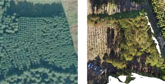 左:航空写真(国土地理院 2010年時)、右:Liberaware SfMデータ(2024年)