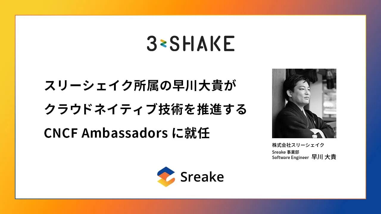 We are pleased to announce that Daiki Hayakawa, a member of 3-shake Inc. (Head office: Shinjuku-ku, Tokyo; President and CEO: Takuma Yoshida) has been appointed as a CNCF Ambassador to promote cloud-native technologies.