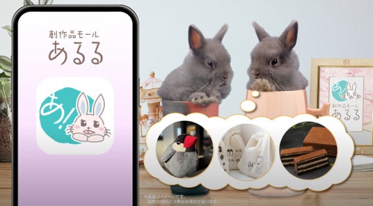 今回のテレビCMでは、創作品モール「あるる」のアプリリリースについての告知と共に、お得なキャンペーン情報をうさぎ達が話すコミカルな内容となっています。
