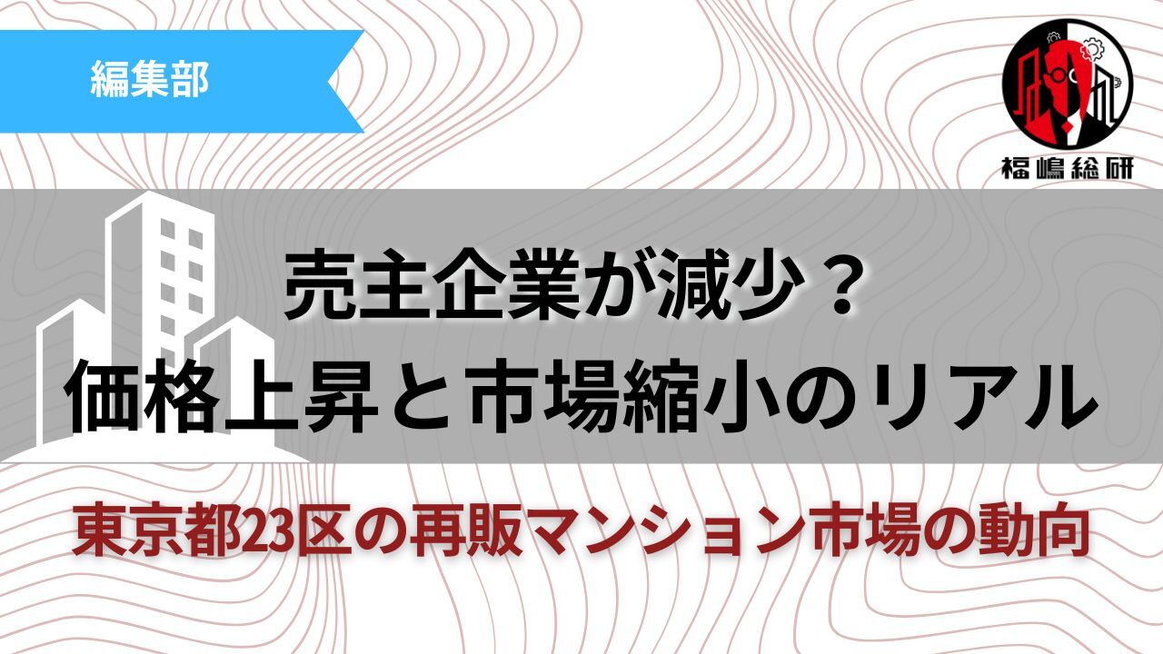 東京都23区の再販マンション市場は、価格が上がり続ける一方で、売られる物件の数が減ってきています。土地や建材のコストが高くなっているため、マンションの価格が高くなり、売主企業も市場から撤退するケースが増えています。そのため、消費者は選べる物件が少なくなり、価格がさらに上がる可能性があります。