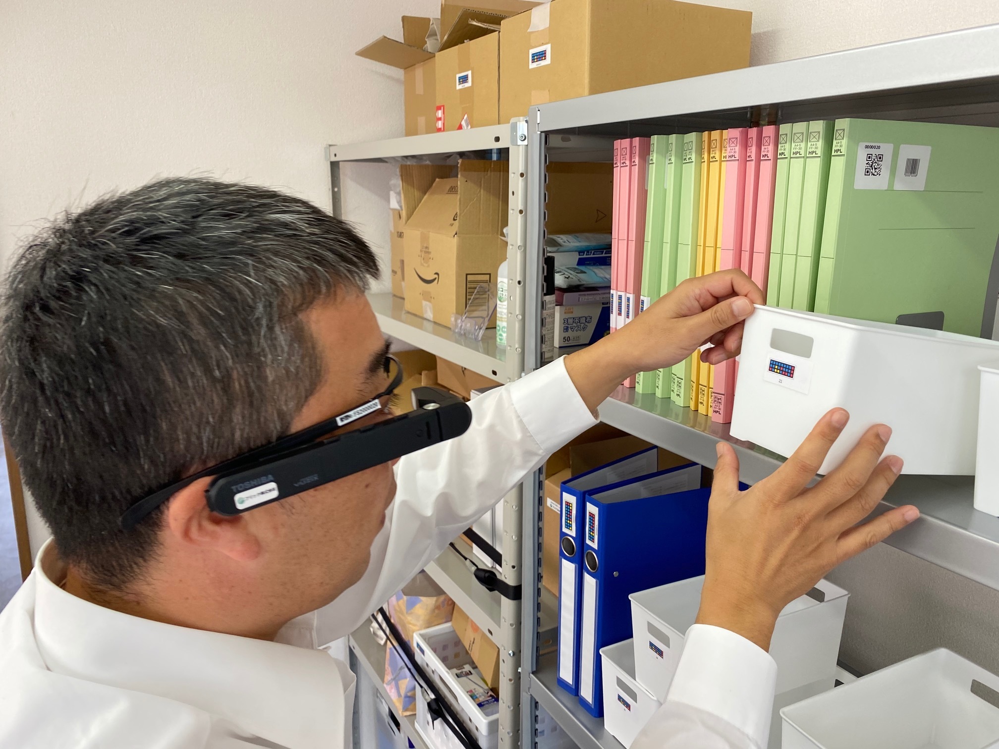 ■管理製品をスマートグラスでハンズフリーの入出庫確認作業