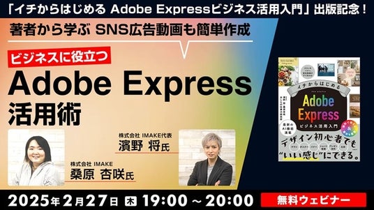 Adobe Expressは、豊富なテンプレートと直感的な操作により、誰でもプロフェッショナルなデザインを短時間で作成できるツールです。Adobe IDを取得するだけで無料で利用できる手軽さも魅力のひとつです。本セミナーでは、2月22日(土)に発売される「イチからはじめる Adobe Expressビジネス活用入門」の出版記念として、著者の濱野将さんと桑原杏咲さんにAdobe Expressについて解説いただきます。Adobe Expressで作成できるものやビジネス用途を意識した活用法の解説のほか、実際にSNS広告用のショート動画を作成するデモンストレーションも実演予定です。ご興味をお持ちの方はぜひご参加ください。
